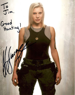 This past summer (2016), my son, Benjamin headed up to the Denver Comic Con and I asked him to get a personalized photo of Katie Sackoff as her character Starbuck from Battlestar Galactica. He told me that she was an awesome person to meet and a lot of fun visiting with the fans...